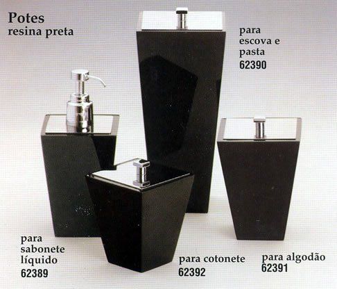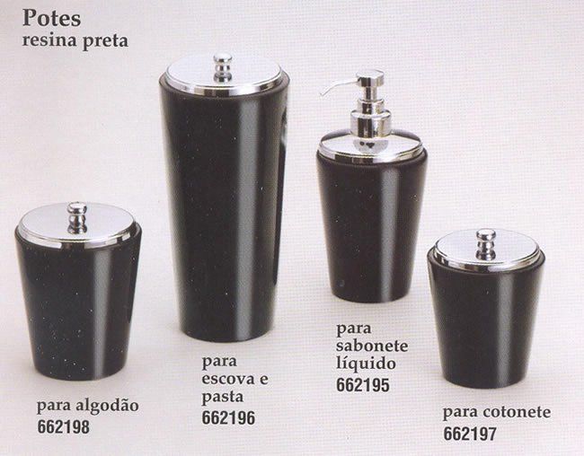 Kit Potes em Resina Preta para Lavabo - Inotex