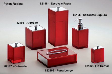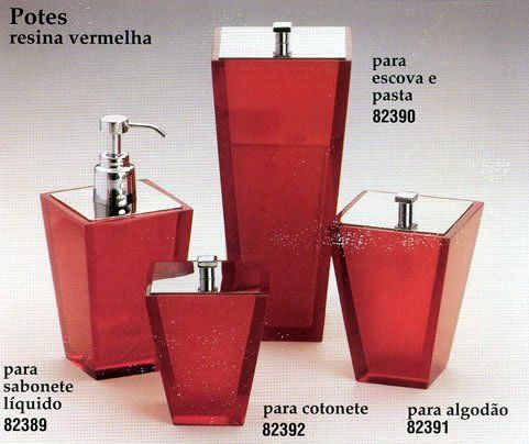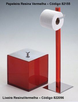Kit Papeleira e Lixeira em Resina Vermelha - Inotex