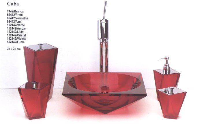Cuba em Resina Vermelha para Lavabo - Inotex